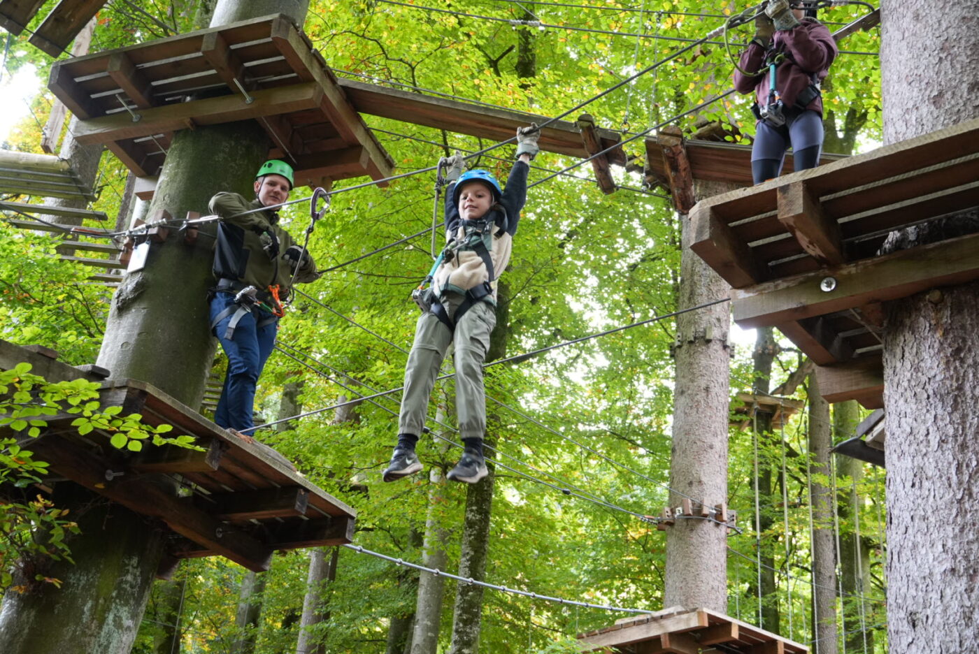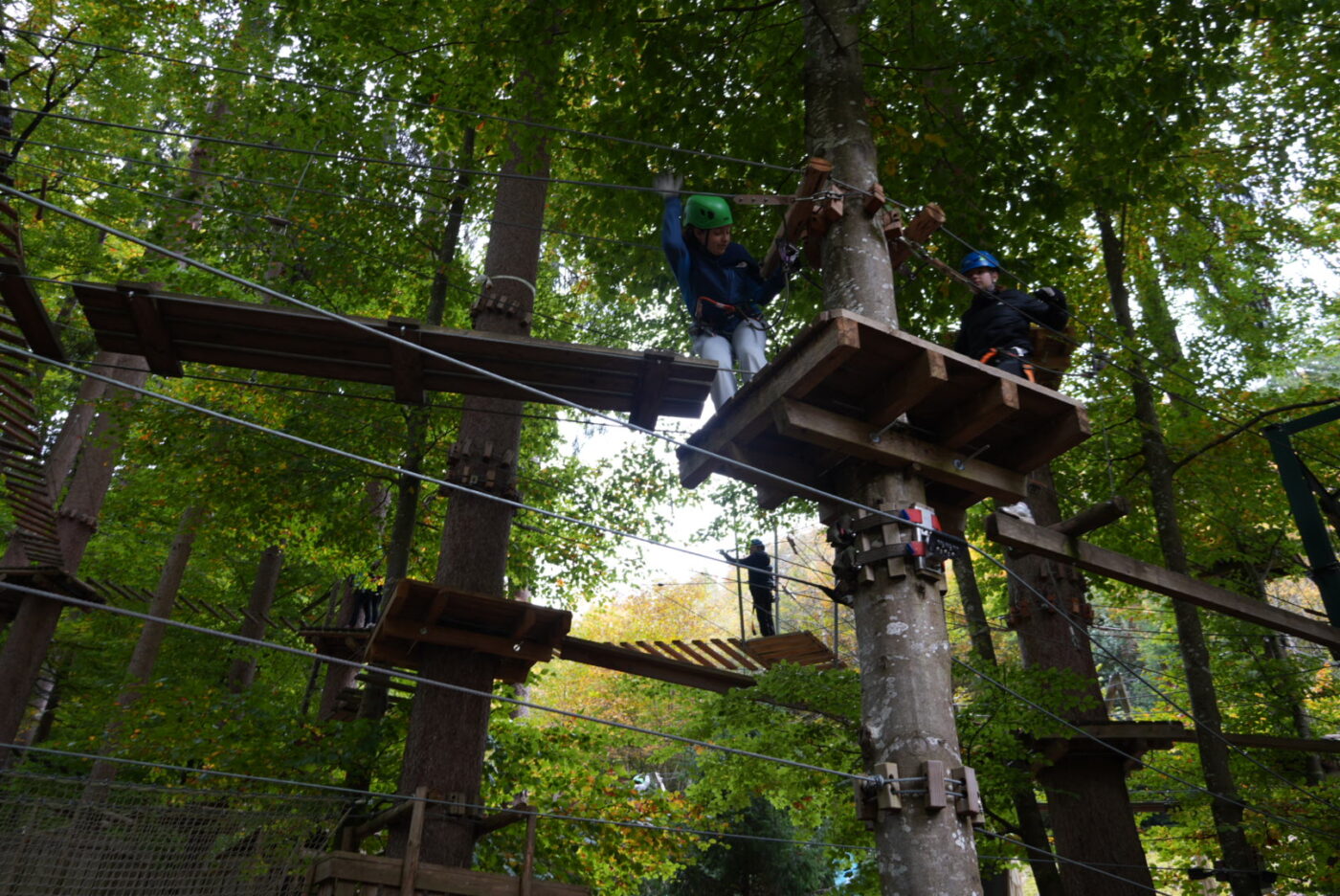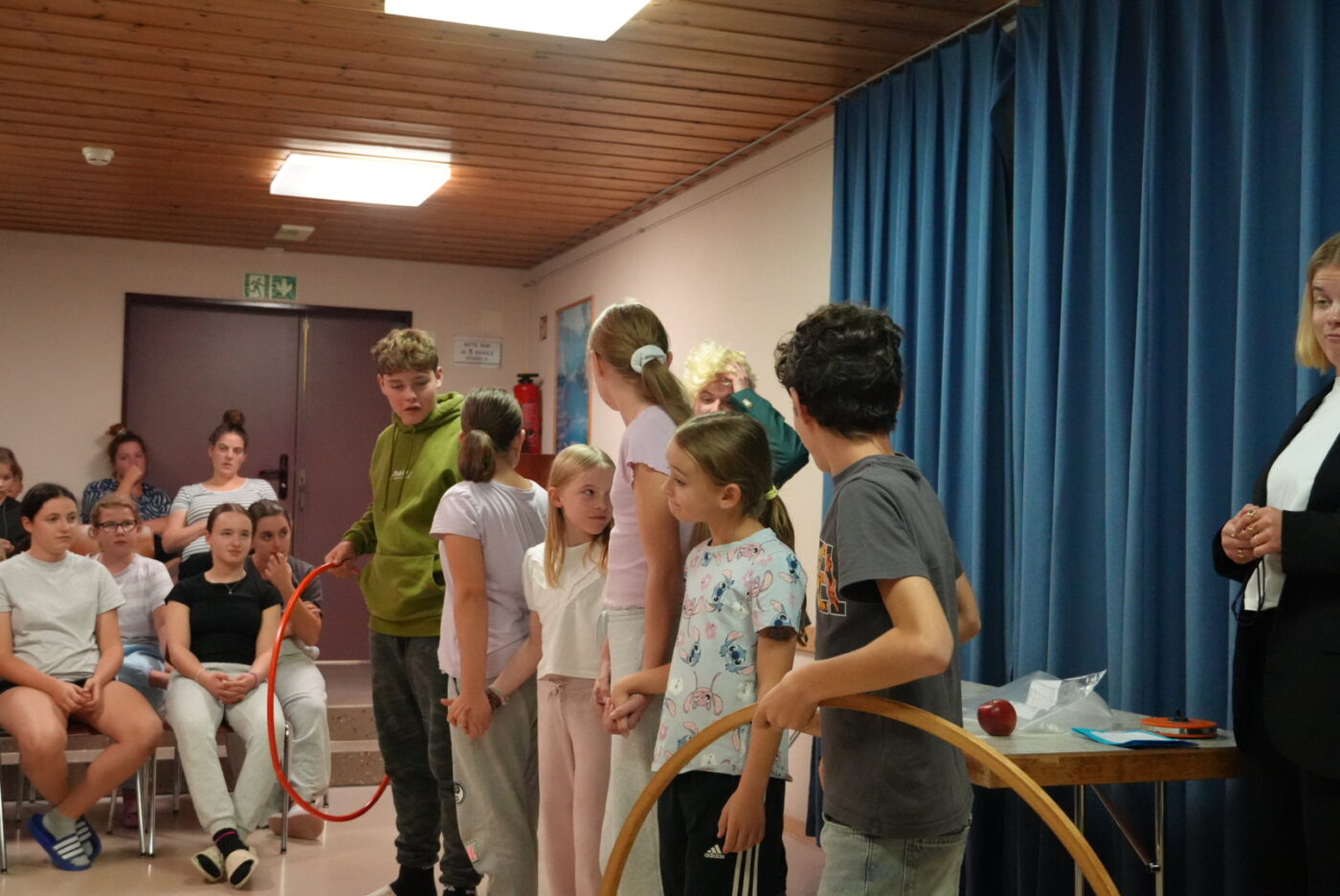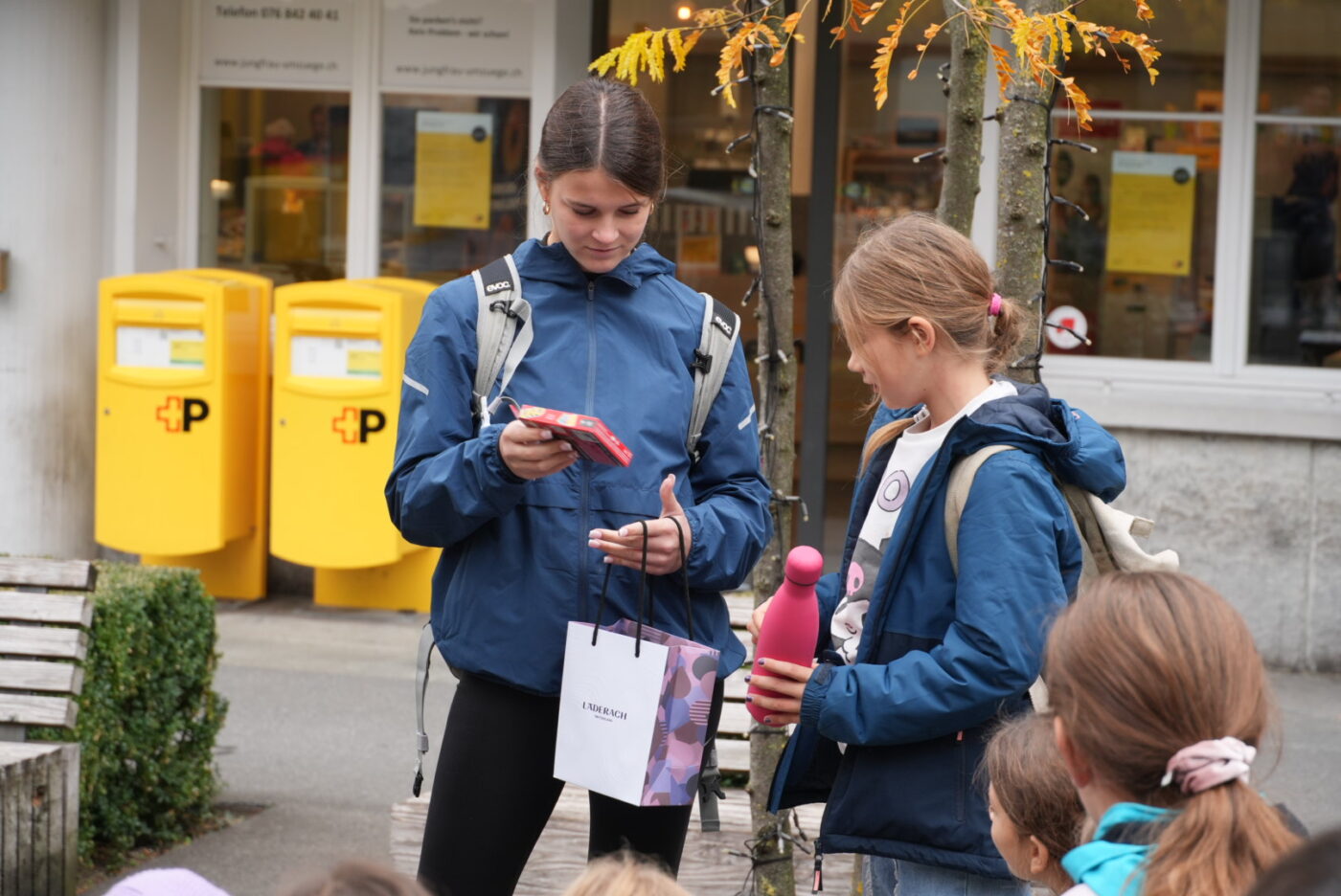 Wir wurden in sechs Sechsergruppen eingeteilt. In diesen haben wir ein Tauschspiel durchgeführt. Jede Gruppe bekam ein Ei oder eine Banane. Diese mussten in einen Alltagsgegenstand getauscht werden. Zusätzlich bekam jede Gruppe ein Sugus, welches in ein typisch schweizerisches Souvenir getauscht werden musste. Jede Gruppe bekam im Läderach gratis Schokolade ohne einen Tausch. Am Schluss war jede Gruppe erfolgreich. Am Mittag liefen wir zwanzig Minuten Richtung Seilpark. Dort bekamen wir vom Küchenteam Sandwiches.