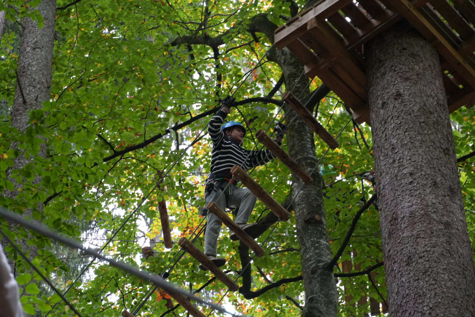 Wir wurden in sechs Sechsergruppen eingeteilt. In diesen haben wir ein Tauschspiel durchgeführt. Jede Gruppe bekam ein Ei oder eine Banane. Diese mussten in einen Alltagsgegenstand getauscht werden. Zusätzlich bekam jede Gruppe ein Sugus, welches in ein typisch schweizerisches Souvenir getauscht werden musste. Jede Gruppe bekam im Läderach gratis Schokolade ohne einen Tausch. Am Schluss war jede Gruppe erfolgreich. Am Mittag liefen wir zwanzig Minuten Richtung Seilpark. Dort bekamen wir vom Küchenteam Sandwiches.