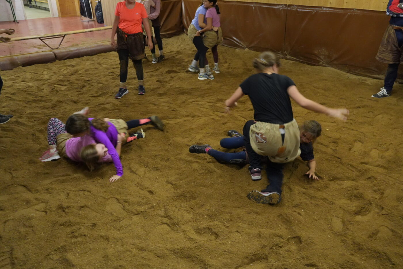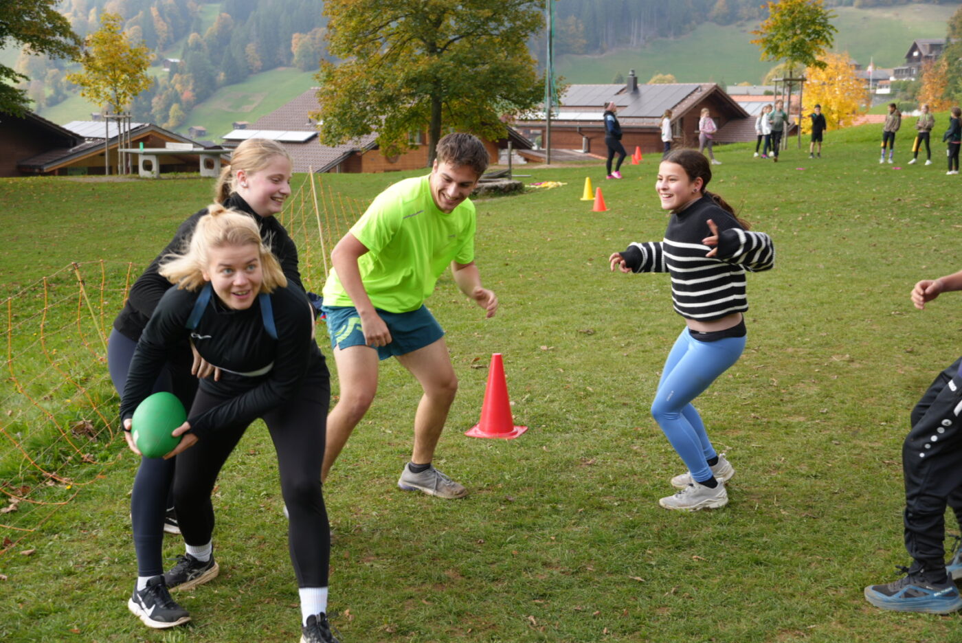 Nach dem Mittagessen wurden wir in drei Gruppen eingeteilt: Das Leiterteam, die älteren und jüngeren Kinder. Das Leiterteam und die älteren Kinder haben Kinball und Rugby gespielt. Die jüngeren haben Redflag und kleine Spiele gespielt.