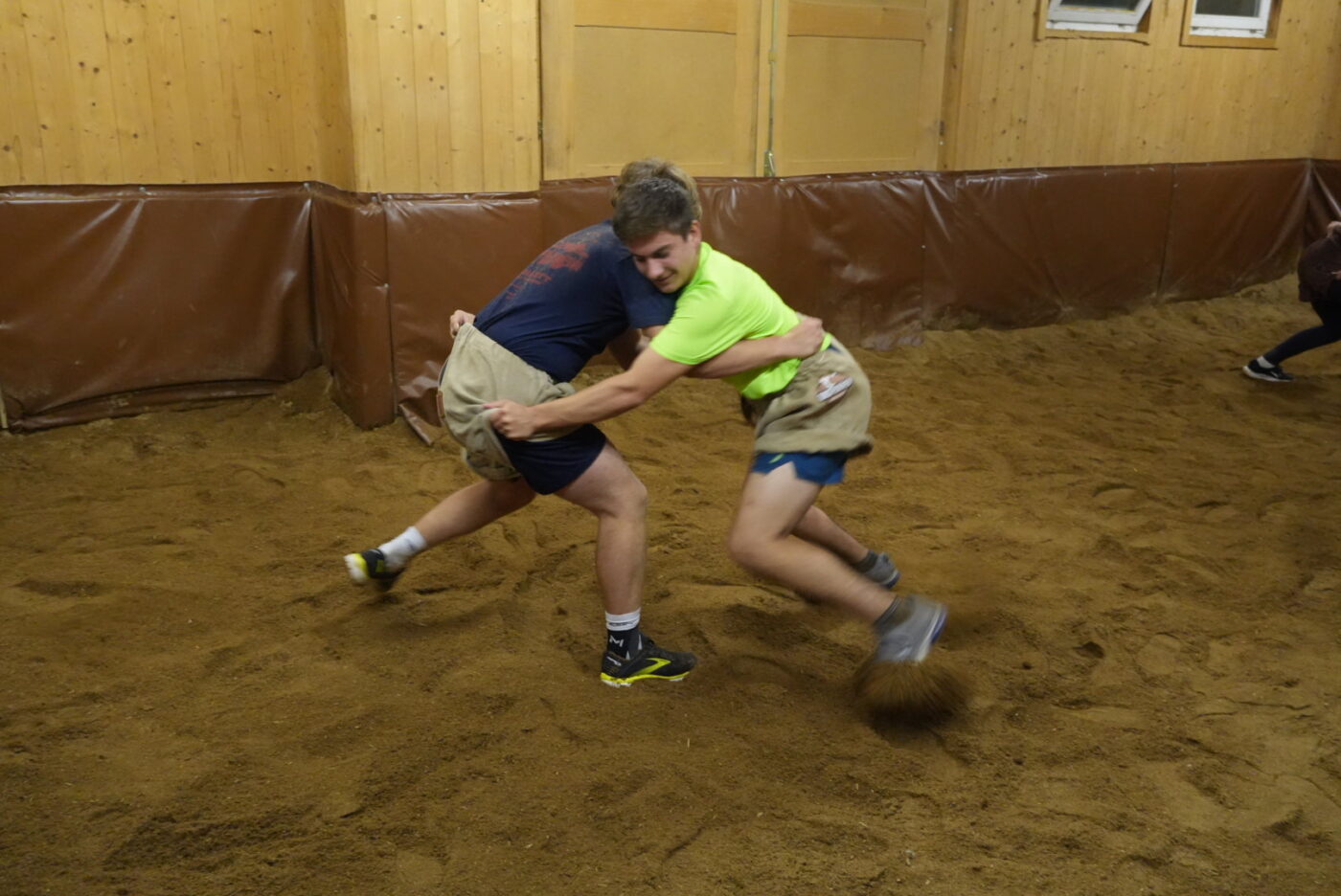 Die jüngeren Kinder haben bereits um 17:00 Uhr Znacht gegessen, damit sie direkt danach auf Matten bei Interlaken in den Schwingkeller gehen konnten. Die älteren Kinder haben um 17:45 Znacht gegessen und haben danach für alle die Ämtli übernommen. Danach gehen sie ebenfalls schwingen.